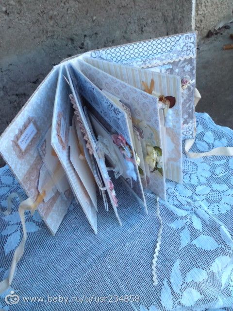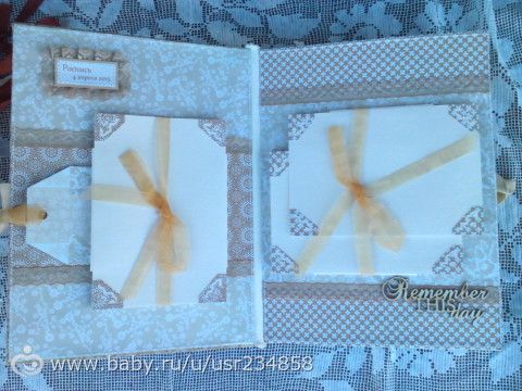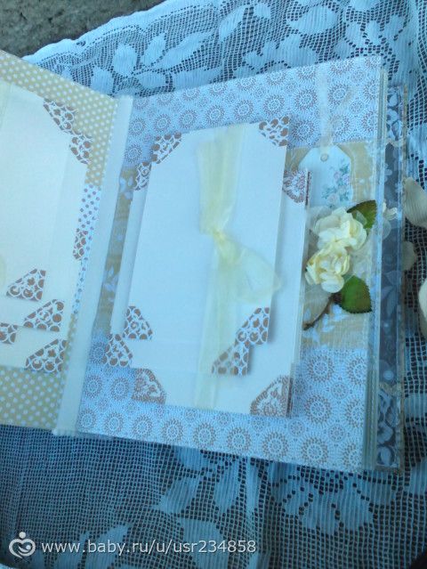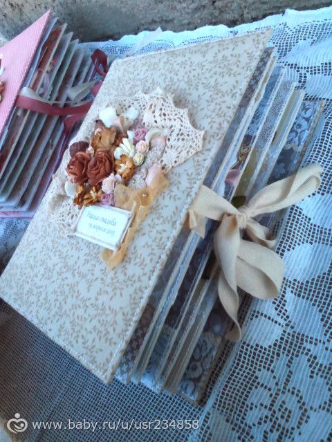 В альбоме будет около 120 фотографий разного формата. 12 страниц. Карточки для записей, конверт для диска с видеозаписями..
