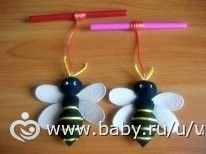 И сделали пчелок с помощью яиц от киндеров и маркера: