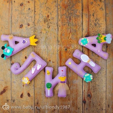 так это буквы-гирлянда, они на ленте.Это не подушки.
