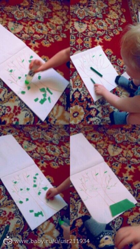 Делали пальму и клеили листики дереву, сын конечно больше с клеем сидел, но все равно помогал мне.