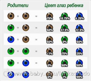 Если смотреть на таблицу, то у нас всё сходиться. Муж мой голубоглазый, я кареглазая=50% на 50%. В итоге оба ребенка «пока» голубоглазые