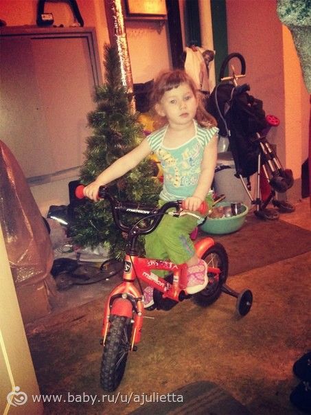 Кстати, по мне, и этот достаточно тяжело крутить. Яся освоила за 10 минут. Колесила весь вечер по предбаннику — не могли загнать домой)).