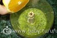 4. Добавить сок апельсина и снова взбить.