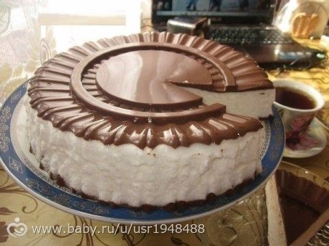 3. Часть какао выливаем в форму, даем слегка «взяться» в холодильнике, затем выкладываем на него слой белков, отправляем в холодильник минут на 15, затем слегка подогреваем оставшееся какао и заливаем последний слой. Отправляем в холодильник на час-полтора. Перед подачей готовый десерт переворачиваем вверх дном. При желании можно посыпать сухим какао.