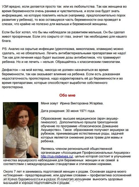 Мадам активно распространяет свой «Справочник беременной женщины в интернете, приглашает на платные семинары и консультации. Будьте осторожны, думайте головой. Я привела цитаты, которые мне „понравились“ больше всего.