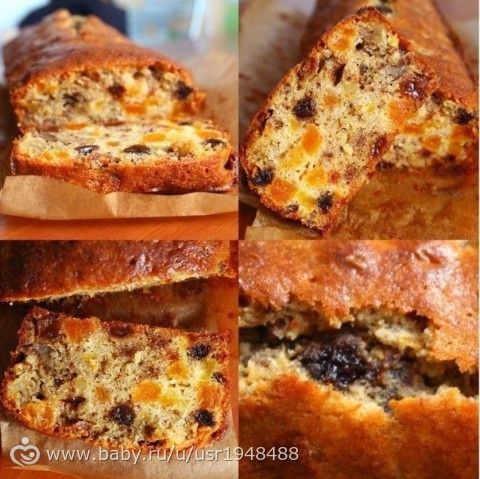 3. Добавляем сухофрукты и орешки в миску с тестом. Просеиваем муку с разрыхлителем и замешиваем тесто, оно должно получится, как очень густая сметана! Не переборщите с мукой!
