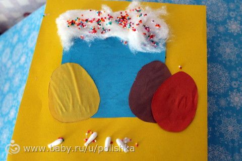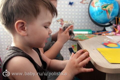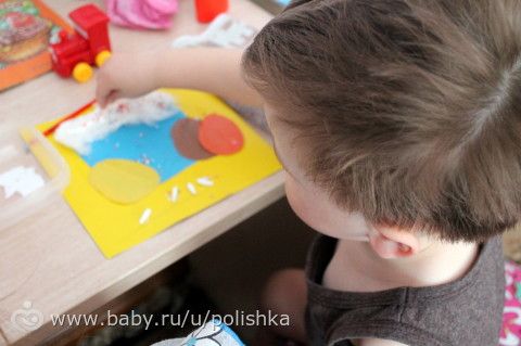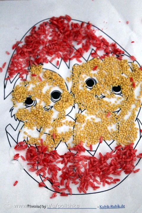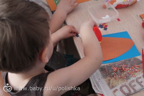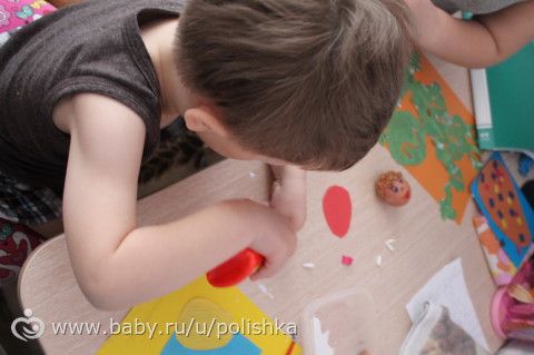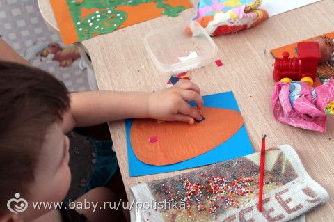 С Тимошей доделали аппликацию крупой.