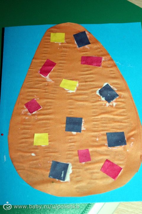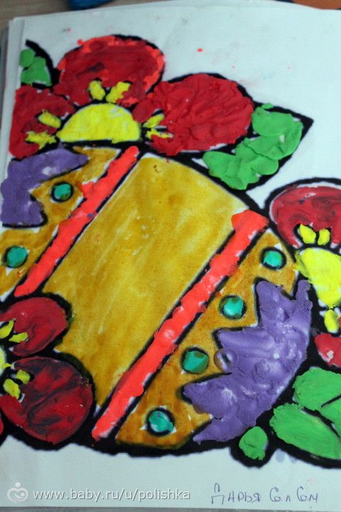 на странице, где яичко упало и разбилось, я не стала продолжать чтение, а предложила деткам создать свои яички. и мы отправились творить. До этого я немного подготовилась, пока сын спал днем, а дочка занималась по прописям. Я сделала вот такое чудо-яичко.