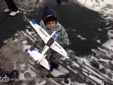 Первого с утра ходили запускать на улицу, и заодно еще самолет муж запускал. Пока самолет не начал летать он был Андрюше не интересен. Но когда он увидел полет от самолета стало то же не оттащить.