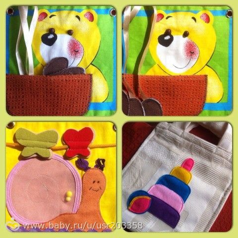 Книжка собирается в любом порядке, можно закрепить как растяжку на кроватку или в виде маленького коврика. Книжка стирается и гладится.