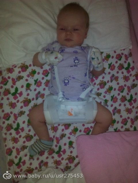 на улицу просто в памперсе выходили, и когда головку станет держать, я его на себе носила, ножками меня обнимал, тоже ножки тем самым разводила.Оль все хорошо будет, все лечимо)
