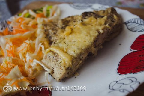 Выкладываем на сыр рыбу.