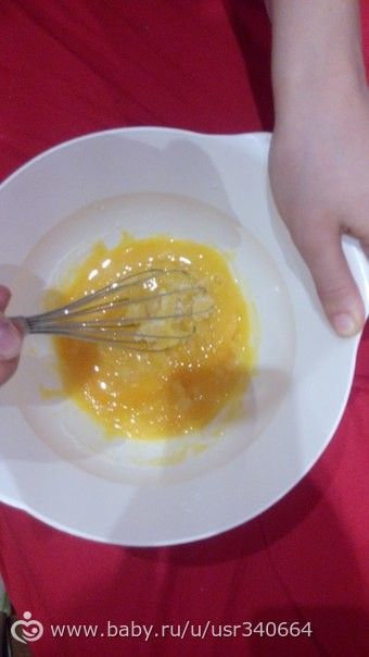 Так вот взяла 6 желтков и растерла с половиной стакана сахара. Почему-то добела не получилось. Миксер так и не приобрела, блендером месила, всё равно желтоватая масса получилась.
