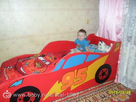 Долго не решалась выставить сие чудо на суд людской). вот наша кроватка, сделали мы её с мужем в подарок сынуле на 3 годика. работали над ней почти месяц, пилили, шпаклевали, красили, вырезали из самоклейки и клеили рисунки, но результат порадовал. сынок обалдел от восторга когда увидел))), и, так мило, сначала не к кроватке побежал, а нас обнимать и целовать со словами «спасибо мам», «спасибо пап», я прям прослезилась)) такой он у нас хороший, так люблю его)))