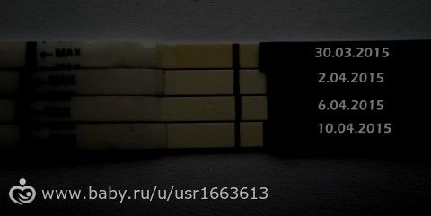 Шёл уже 39-ый ДЦ, у меня внезапно жутко заболела грудь. Прям печь начало. И это при том, что никогда такого не было, ни в середине цикла, ни перед или во время М. Я купила тест на беременность (Эвитест) и сделала на следующее утро. Тест через минут 10-15 показал вторую полоску, вернее — её призрак, но очень заметный, розовый. Вглядываться не нужно было. Я подумала тогда, если в моче ничего нет, то и реагировать тесту было бы не на что, и решила повторить через день. В любом случае, если это Б., то будет динамика. Повторила. И снова полоска. Но такая же по интенсивности (если не тусклее). Предположила, что так тест отреагировал на О. (что вполне возможно — симптомы те же). Но решила ещё сделать тест через 4 дня (чтоб уж наверняка). И снова полоска. И ещё через 4 дня — опять полоска.