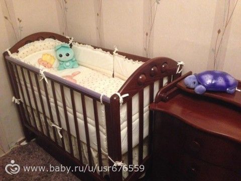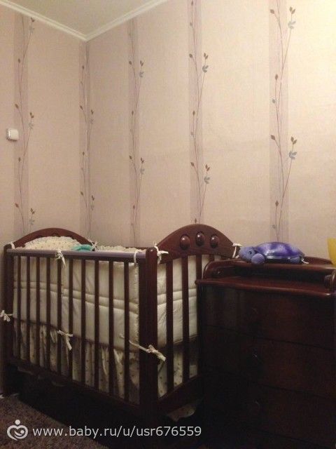 Кроватку покупали в Детях, «Орхидея» с поперечным маятником, а комод этой же фирмы заказывали на сайте Акушерство. Вся мебель из массива дерева, после сборки не было никакого неприятного химического запаха, как часто бывает с новой мебелью) Так что, результатом я очень довольна)) балдахин пока что вешать не стали, нечего ему пыль собирать:)