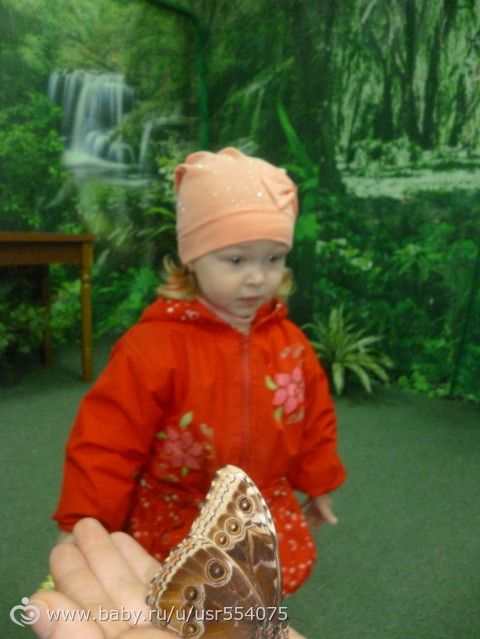 а это мы сегодня ходили на выставку тропических бабочек, нормального фото нет так они там летаю и пытаеются сесть на тебя, а Тереза их боялась))))