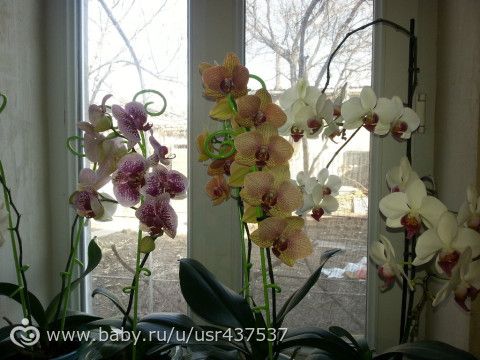 У меня этих красавиц 7 штук и каждая в прозрачных пластиковых горшках, обязательно в каждом маленькие дырочки по бокам, сделала нагретым гвоздем, для вентиляции, а то корни могут загнить! Поливаю раз в две недели, летом чаще с удобрением «Цветочное Счастье» для орхидей. Опрыскивать сейчас уже можно через день, каждый день. Стоят пол дня на хорошем солнышке, но летом убираю в притененое место, а могут быть ожоги на листах...