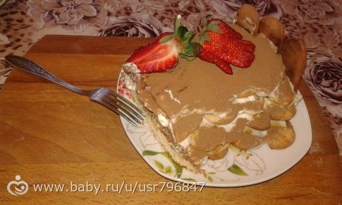 Ароматный, нежный, воздушный… а самое главное бомбически вкусный торт Тирамису! Классические савоярди (дамские пальчики) под слоем кремчиза со сливками… какао и клубникой! это стоит попробовать каждому… и вы не останитесь равнодушными!