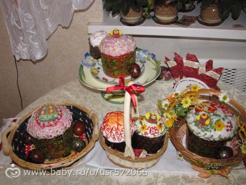 Мы с ребенком мешали, потом украшали, ему дала маленький куличик (тот, что с цыпленком). Правда до Пасхи один цыпленок не долетел, в тот же ребенок его слопал по тихому.
