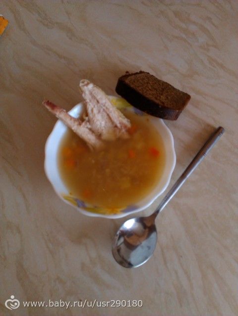 обед суп из чечевицы с курицей 1 кусок бородинского