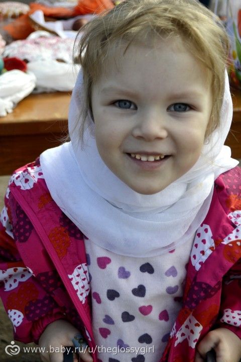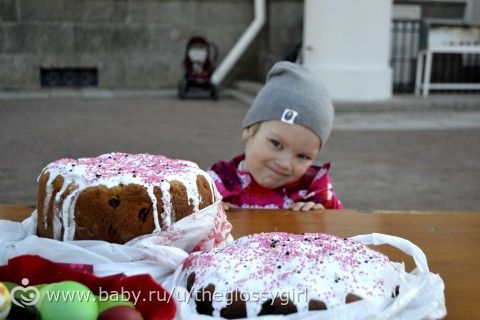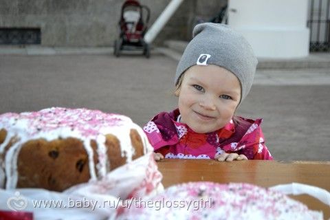 Милюша бегала по дорожке у храма с криками «Христос Воскресе! Христос Воскресе!», подарила батюшке яичко, за что получила конфетку))