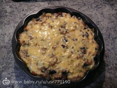 7. По истечение времени посыпаем сверху натертым сыром и отправляем в духовой шкаф еще минут на 10.