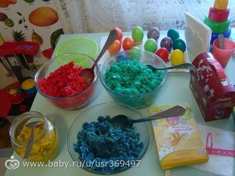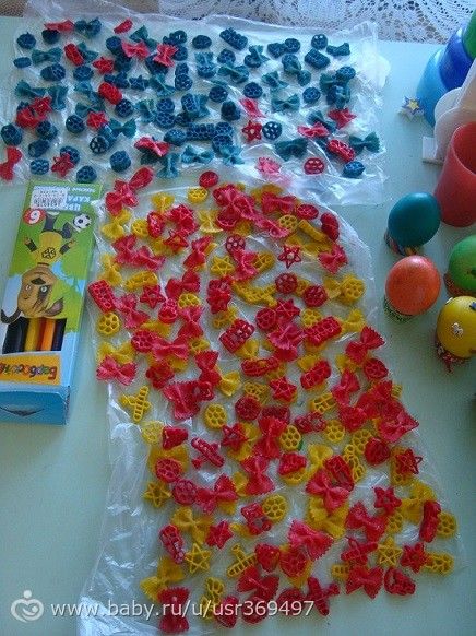 А макарошки красила краской для яиц? Мы так после яиц риск покрасили в 6 цветов для поделок.
