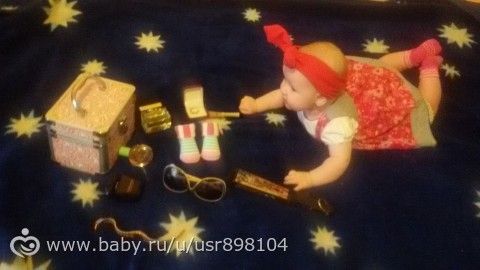 Что мы уже умеем: брать игрушки и грызть их, поворачивать голову на свое имя, едим все фруктовые пюрешки, которые можно с 4-х месяцев. Особенно любит грушу)