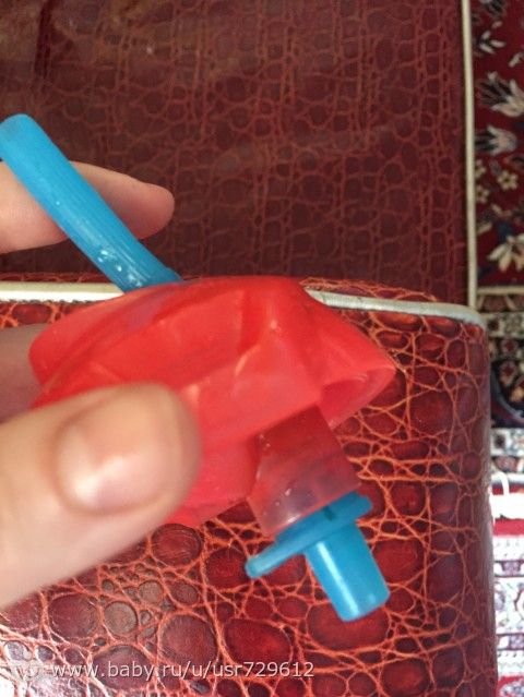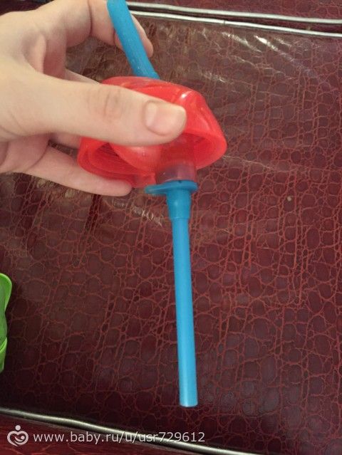 Поильник NUKE красный, там 2 насадки, одна силиконовая-непроливайка, работает по типу соски, те надо не пить, а именно больше сосать. Пили с 10мес. с него и молоко, и снежок и йогурты.