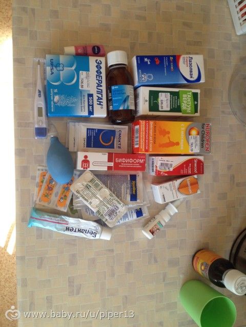 я очень много всего брала: от темпы(Панадол, цефекон, нурофен). от живота ( энтеросгель, линекс, регидрон, смекта), от горла ( эреспал, тонзилгон, тантум верде), от кашля ( лазалван ), даже антибиотик на всякий брала(флемоксин солютаб). ну и крема от солнца. таблетки не зря брала, 4 дня темпа у нас была 39,2 последние 2 зуба вылезли, прям с кровью, бедный мой ребенок кушать даже ничего не мог(. В этом году тоже этот же список с собой возьму