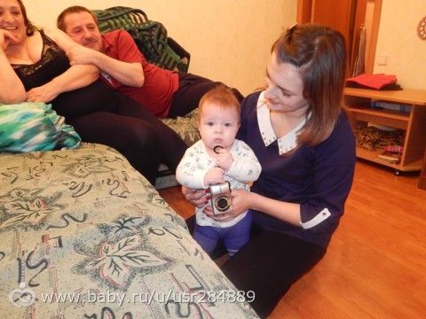 Нашему пузыречку скоро 9 мес, он уже понимает что я — мама, так иногда меня и зовет, когда ему что то надо, и папу тоже папой называет — когда хочет играться с отцом. Есть два зуба пока, учится ходить на горшок — на ходунках гоняет по дому — только через пороги еле как еще переходит! За ручки держится и ходит, Любит танцевать смотря клипы по телевизору! Ползать не хочет! Кушает все — кроме кефира, после той рвоты из за зубов!