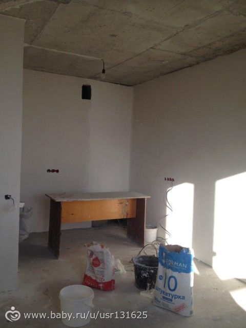 Из того, что было, мы сделали полторашку )))) отделили детскую в общем. Теперь это выглядит вот так (первые 4 фото). Где бардак, там детская)) стол в кухонной части (гостиная/кухня). Вооооот. Дело осталось за малым: постелить полы, поклеить обои, натянуть потолок… Фигня делов, но деньги закончились