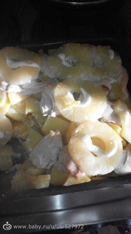 и мое любимое блюдо куриное филе с ананасами! ну и картошечка))
