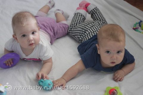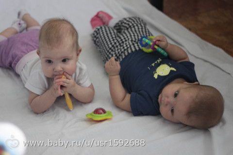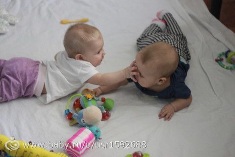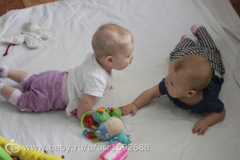 Мила носилась, ползала игралась активно) а моя ещё не умеет ползать и не так активно пыталась узнать кто ш это такой пред ней) разница в месяц, но моя больше)