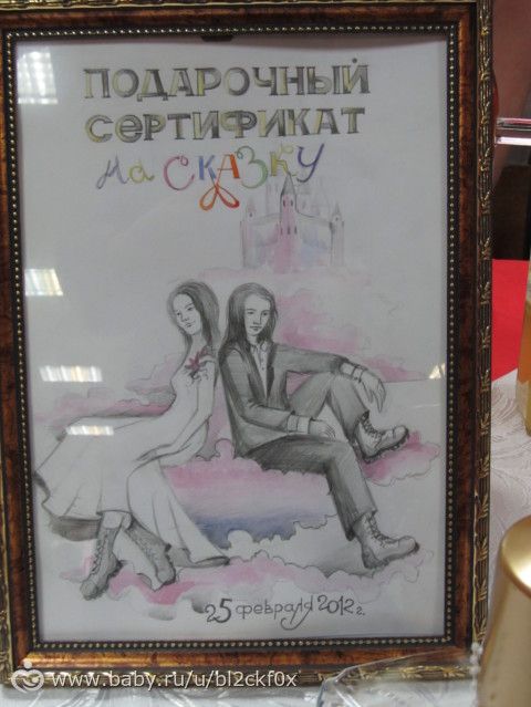 у нас на свадьбе друг загнул историю про обручальные кольца, откуда это пошло, подарил сертифекат на сказку ну и к ней конверт на воплощение)))