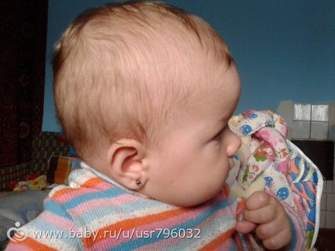 Я не хочу свою кроху мучить так рано.Считаю не нужны ей серьги в таком возрасте.А Вы молодец.Сережки лучше простые колечки купите на первое время.Они не гнутся и не цепляются не за что.Говорю авторитетно как крестная 4 девочек.))