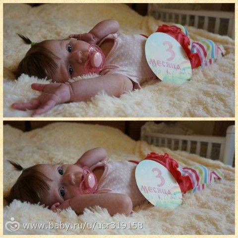 Ну вот нам и 3 месяца! наша бусинка каждый день нас радует и дарит самые незабываемые моменты! Папа ее вообще обожает и она его) еще та папина доча. На сегодня мы умеем: Переворачиваться с пузика на спинку и обратно, держать уверенно головку, ручками везде уже тянется и берет все, что попадается, смеемся в слух и на вопрос " покажи как ты любишь маму с папой" она разводит ручками и тааак улыбается)) В ванной правда последнуюю неделю мы не плаваем, а просто как буек висим в кругу и разговариваем с бутылочками)) Спим мы с 11 вечера и до 8 утра не просыпаясь на кормление. Ну и наш вес 4950кг и рост 61см.