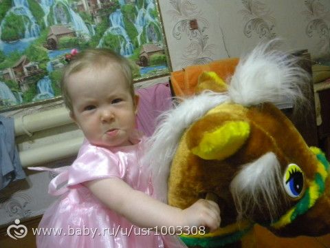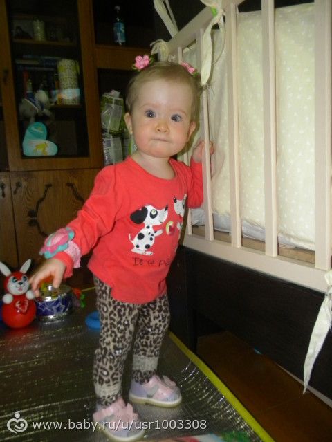 У нас все хорошо. Ксюшенька растет и радует маму с папой. У нас 6 зубов, умеет стоять без опоры минуты 2. Хорошо ползает по всему дому, бьет собаку и маму.)) Кушаем только из баночек, много раз пробовала варить сама, но ни в какую она не ест. Спать ложимся в 21.00, потом просыпается в 5.00 пьет водичку, перебирается в мамину кровать и до 8.00 спим дальше. днем спим 2 раза.первый раз в 11.00 часик и второй раз в 15.00 пару часов.Очень любит ходить за руки, читать книжки и играть мячиком. Кушает Ксюня только под мультик Тини лав, по другому никак ее не накормить.