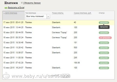 24.06.15 г. поступило 1 100 руб.