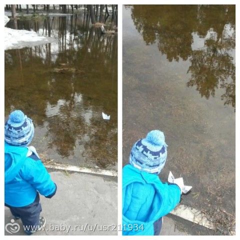 Кораблики мы пускали на прогулке))) так здорово. Один кораблик несколько раз прибивался к берегу и мы снова его пускали