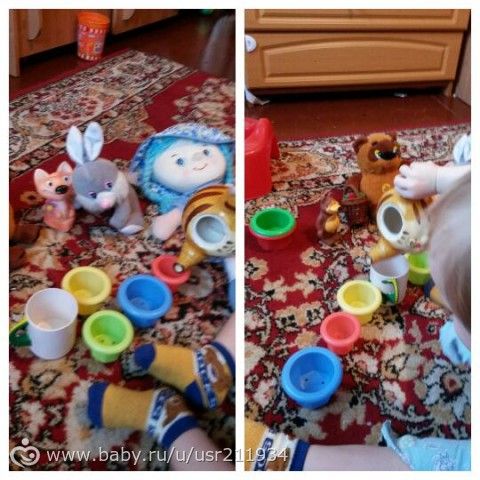 Даже мой непоседа проиграл минут пятнадцать. Наливал, поил гостец, а потом сложил кружки правильно!!!!