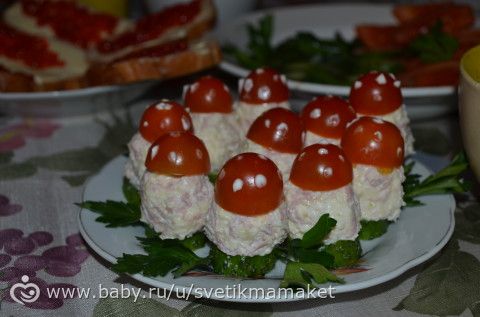 делала цезарь с курицей(рецепт в нете), с семгой, огурцом свеж, яйцо, отвар.картоф.лук зеленый майонез, и ромашка это нашинкованные свежие овощи, свекла, капуста, морковь, лук, консер.горошек, жар.картошка, жар.мясо, все делается на большой тарелке, и укладывается как ромашка порциями, в середину мясо и майонез… закуски делала блинчики с твор.сыром и форелью(семгой), краб палочки с сыром и чесноком, грибы шампиньоны с грец.орехом=сыр=морковь=лук жарен