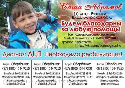 Помогите Саше попасть на реабилитацию.Вся информация проверена модераторами