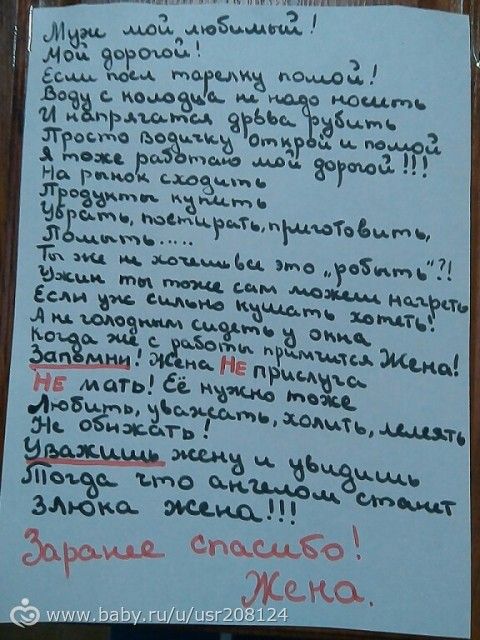 :))))) 23 апреля 2015 18:24 Комментарии Пожалуйста, будьте вежливы и доброжелательны к другим мамам и соблюдайте правила сообщества ПожаловатьсяСкопировать ссылку Мария Глушкова Василий21 годДмитрий14 лет Пенза ПожаловатьсяСкопировать ссылку ИрИнА Вероника22 годаСофья10 летСергей25 лет Калининград Прочитаешь такой стишок и подумаешь — как же мне с мужем повезло!!!))) ПожаловатьсяСкопировать ссылку Mari Shefer Майя13 лет мой бы до конца не дочитал) да я тоже)автору Предыдущая статьяО ТОМ, КАК ДЕВУШКА ХУДЕЛА!Следующая статьяДва сыночка и лапочка дочка)))Актуальные постыво сколько месяцев недоношенные дети переворачиваюсяво сколько малыша можно садитьво сколько мес ребенка можно посадить