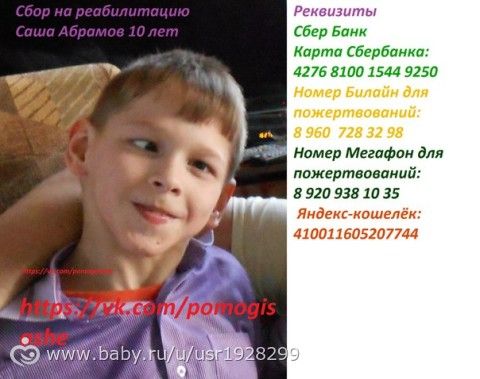 Мы можем лишь просить Вас, дорогие друзья, не отвернуться, не закрыть свою душу от беды Сашеньки, не пройти мимо!