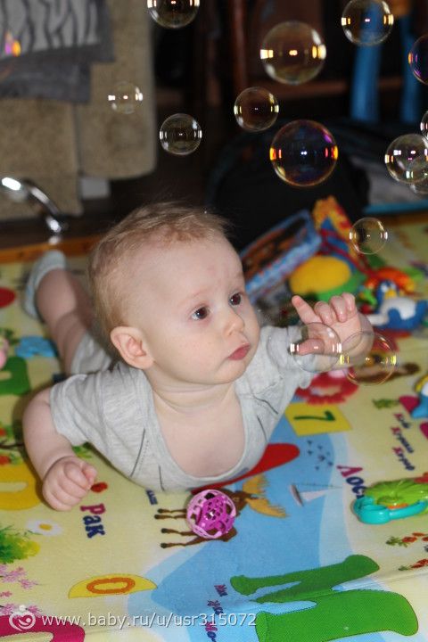 Мы стали очень активные, на месте не сидим! Во всю ползаем, стоим с поддержкой, смеёмся, говорим слови «ма-ма-ма», «ба-ба-ба», «па-па-па» и что-то на своём «детском» языке!
