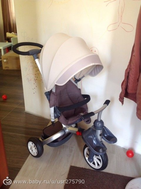 Стиль рамы и капюшона очень похож на коляски Stokke. Красивый велик, никогда таких не видела прежде.