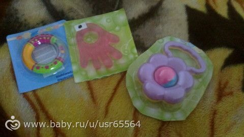 2-е клевые погремушки, и такая штучка чтоб малыш десенки чесал, когда зубки режутся (простите меня не грамотную, что не знаю как называется )