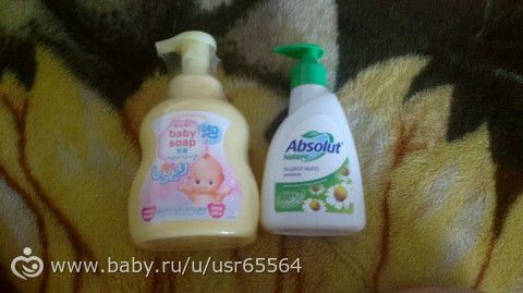 жидкое мыло для ребенка и антибактериальное! В списке в роддом было написано, но я решила не покупать, опять же из-за экономии! Но видно, что посылку собирали мамочки с опытом, знают что нужно!
